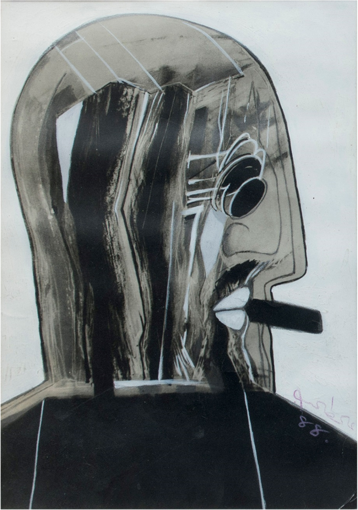 Ali TALIB, Smoker, Oil on Carton, 1988, 30 x 20 cm, Signed