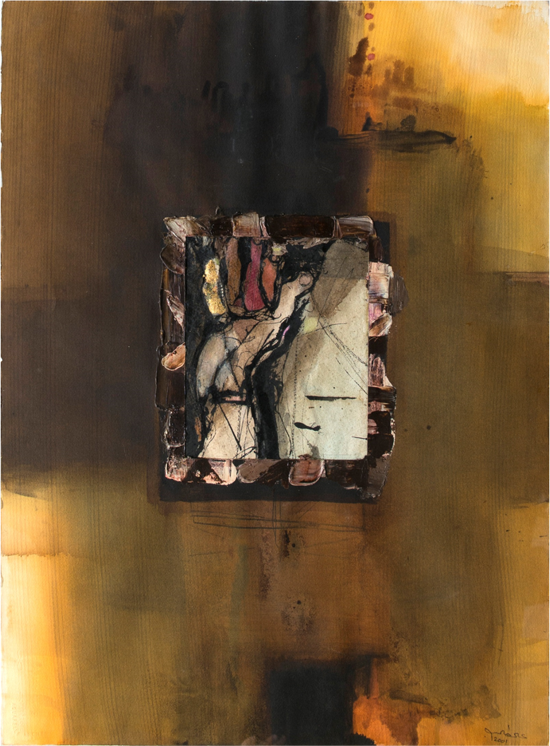 Ali TALIB, Blockade, Mixed Media on Carton, 2001, 140 x 90 cm, Signed