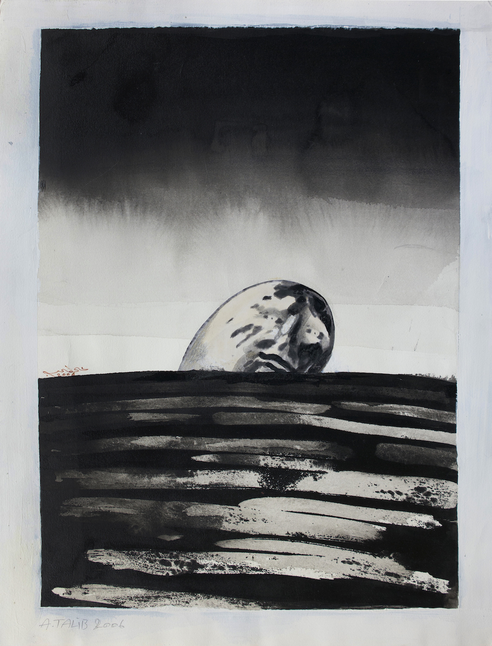 Ali TALIB, غريب على الخليج, Oil on Carton, 2006, 66 x 50 cm, Signed