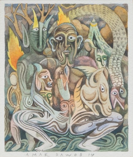 Amar DAWOD, Miniatures, 2014, Watercolors on Carton, 17 x 14 cm, Signed
