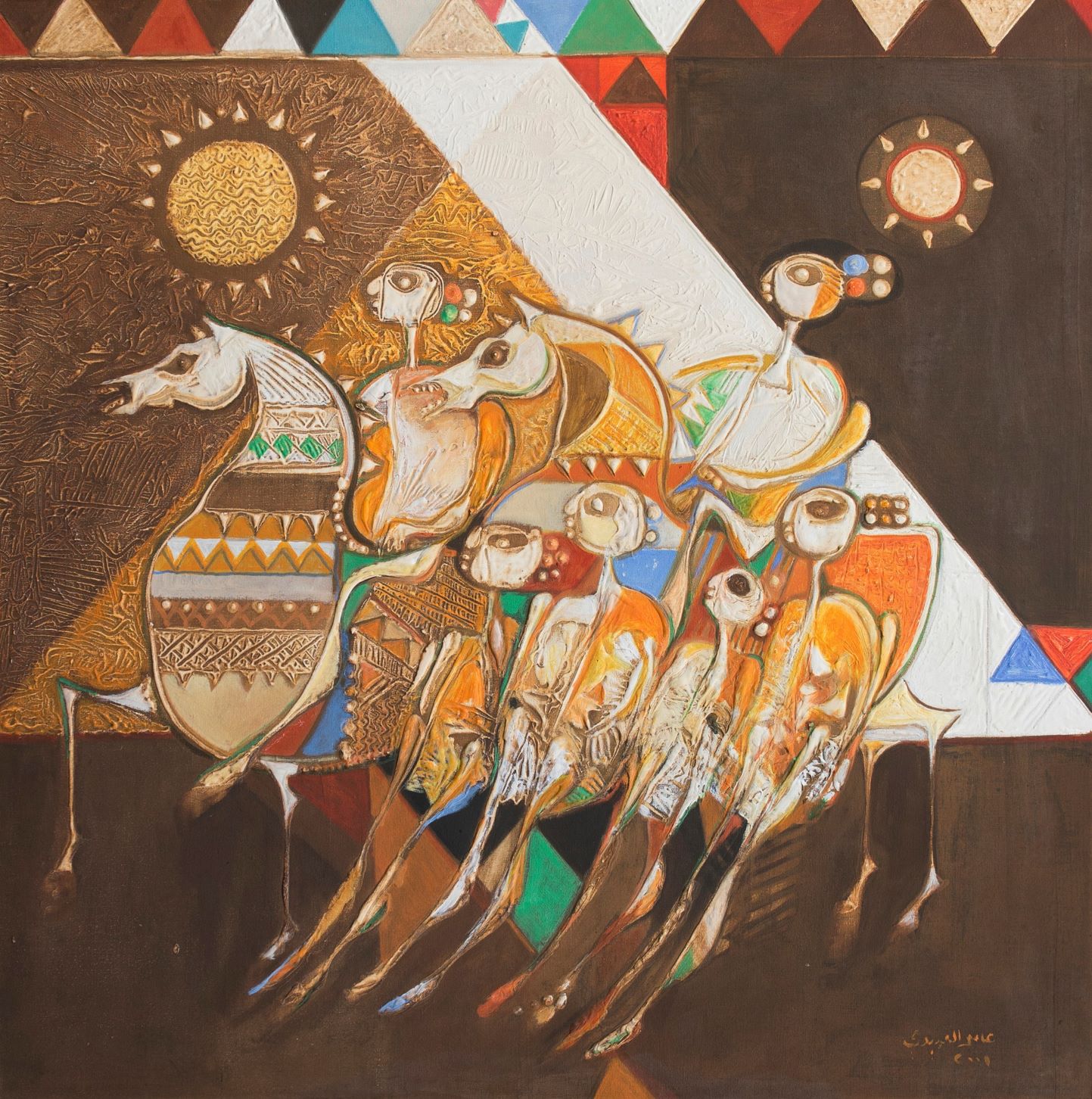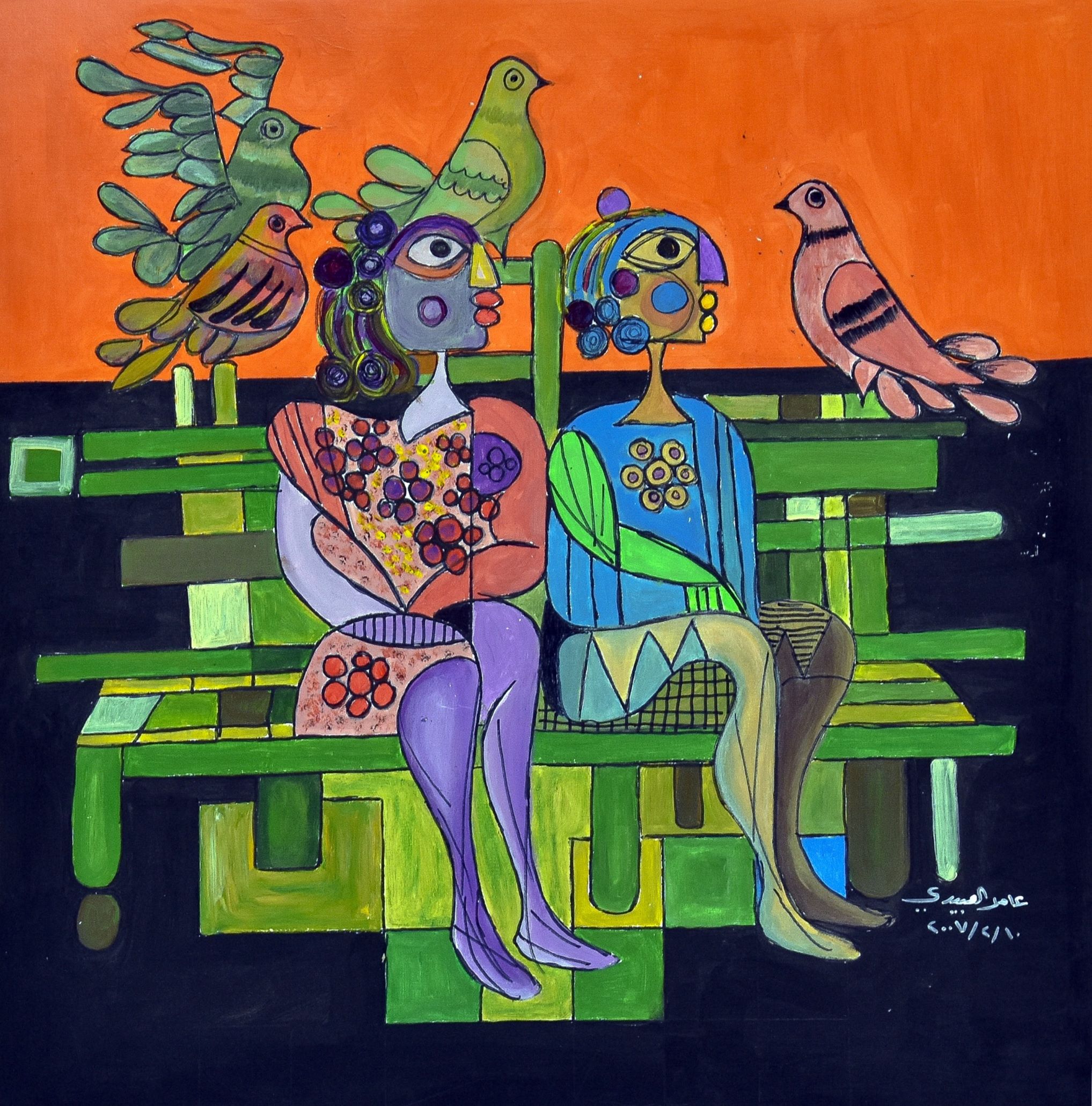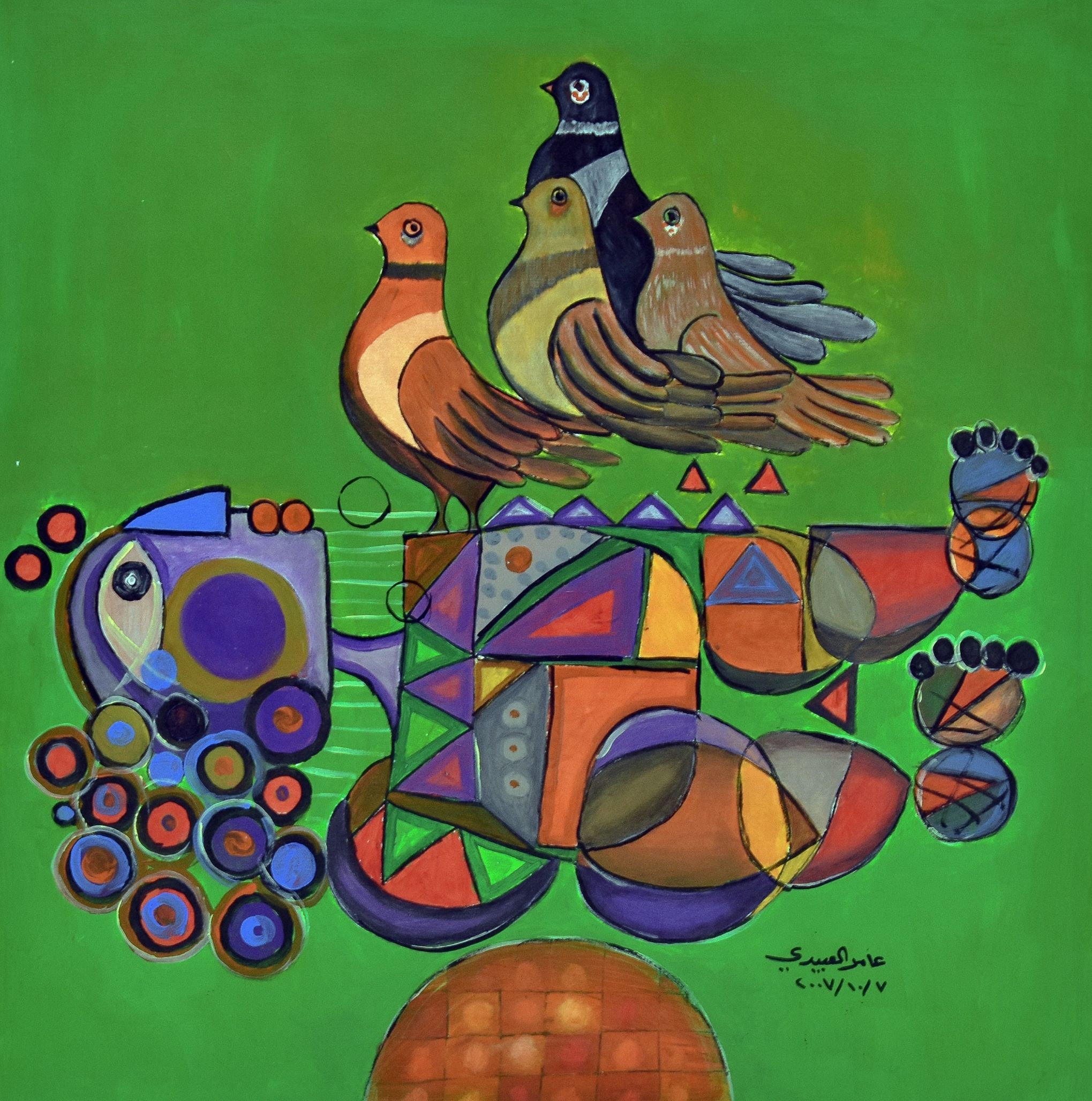 Migrant Birds طيور مهاجرة, Acrylic on Carton, 2007, 70 x 70 cm, Signed