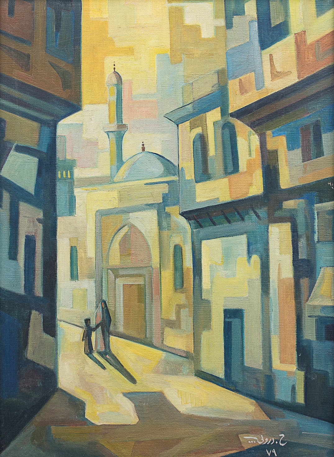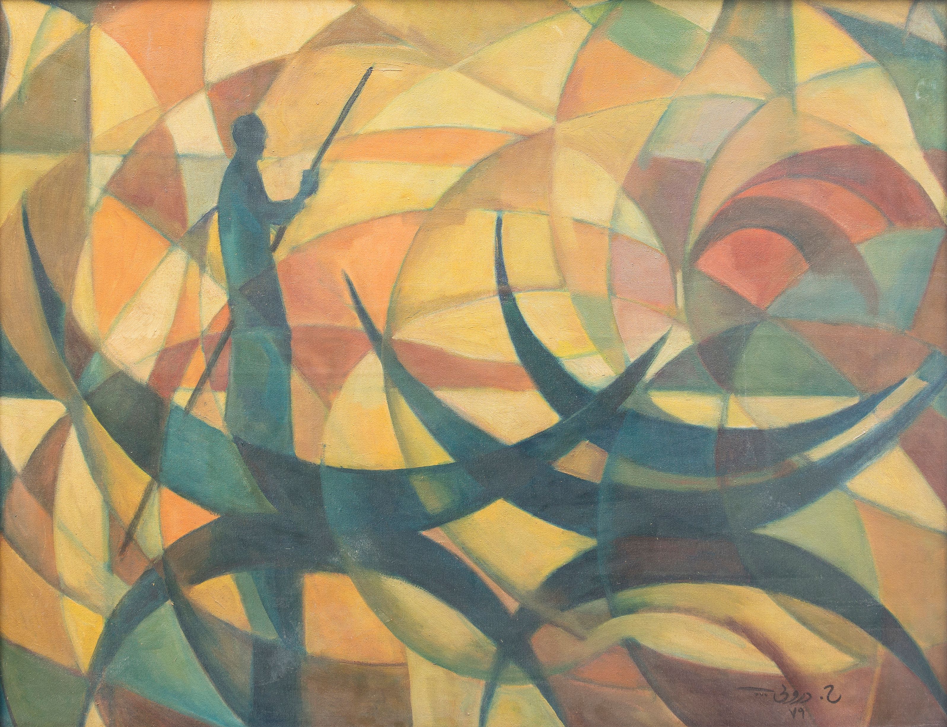 • 1954 He participated in the group’s first exhibition at the Institute of Fine Arts Institute in Baghdad and Basra. This was the beginning of his cubist style, where he worked on a mural in the house of Eng. Al-Haidari and participated in the British industrial trade fair in Iraq as requested by the Ministry of Tourism. He also participated in the itinerant Iraqi exhibition in India.