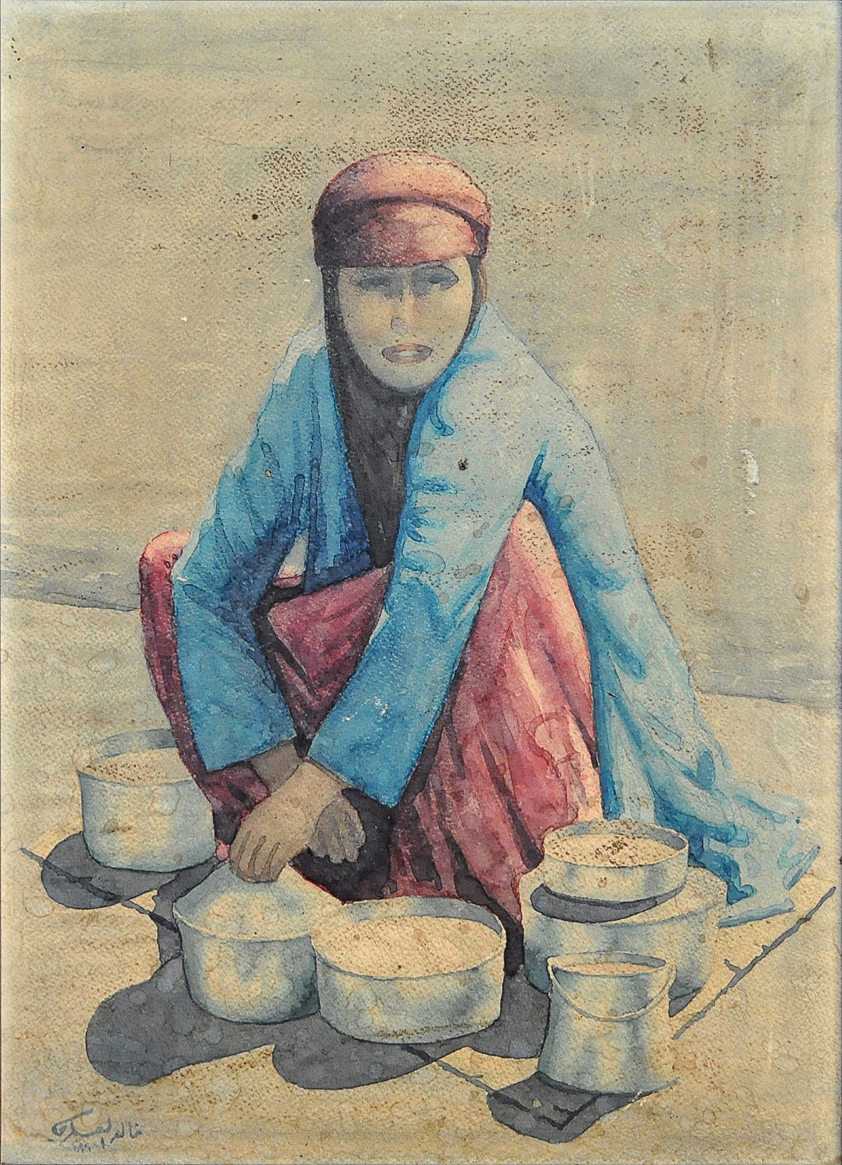 He was deeply connected to his city of Mosul and constantly sought out its beauty. He frequently looked for people and scenes that reflected the local heritage. He meticulously documented his life and his city, capturing them with transparent and professional watercolors.